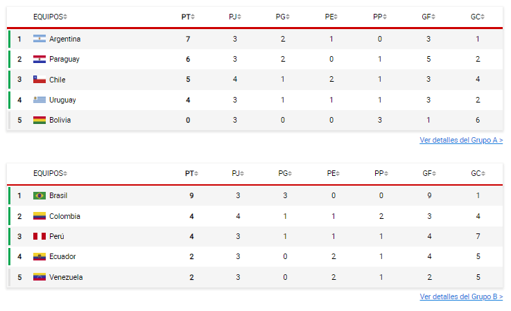Este lunes se cerró la fase inicial de la Copa América y quedaron definidos entonces los ocho clasificados a los cuartos de final con sus respectivos cruces. Si bien antes del inicio de la jornada de hoy las eliminaciones de Bolivia y Venezuela ya se habían definido, faltaba ver el orden en el que quedaban los integrantes del Grupo A para que queden emparejados los duelos de la siguiente ronda.