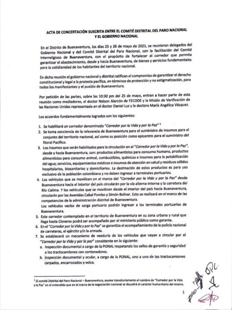 Una dura polémica se generó luego de conocerse el documento del supuesto acuerdo entre el Gobierno nacional y el Comité del Paro, que fue firmado el jueves 27 de mayo en Buenaventura.