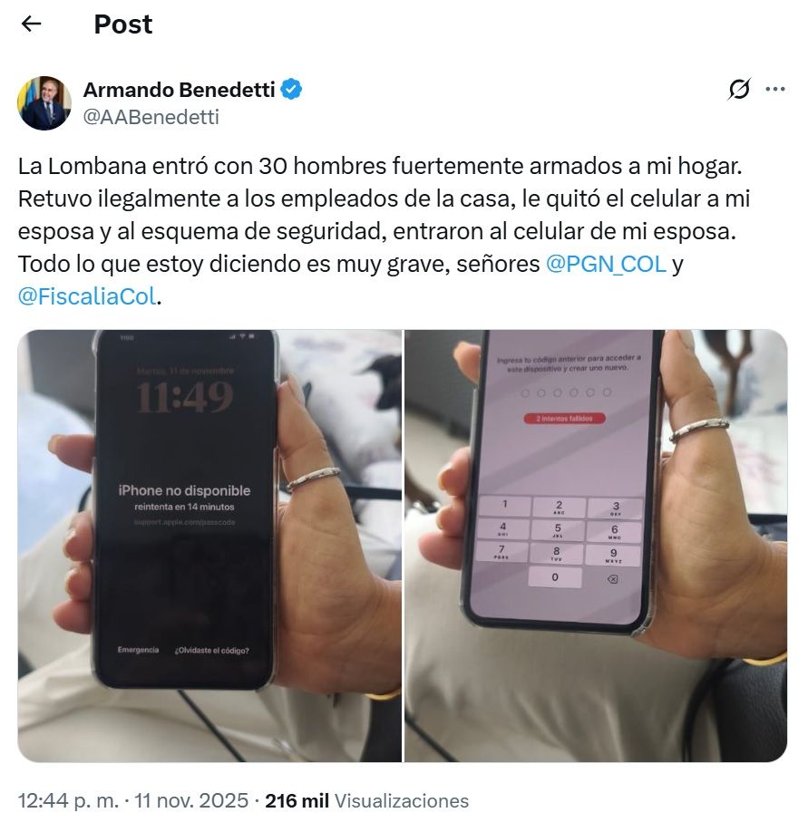 La controversia tomó un giro político mayor cuando el presidente Gustavo Petro salió en defensa de su ministro. En sus redes sociales, calificó el procedimiento judicial como un “allanamiento ilegal”, atribuyéndolo a una supuesta animadversión personal de la magistrada hacia Benedetti.