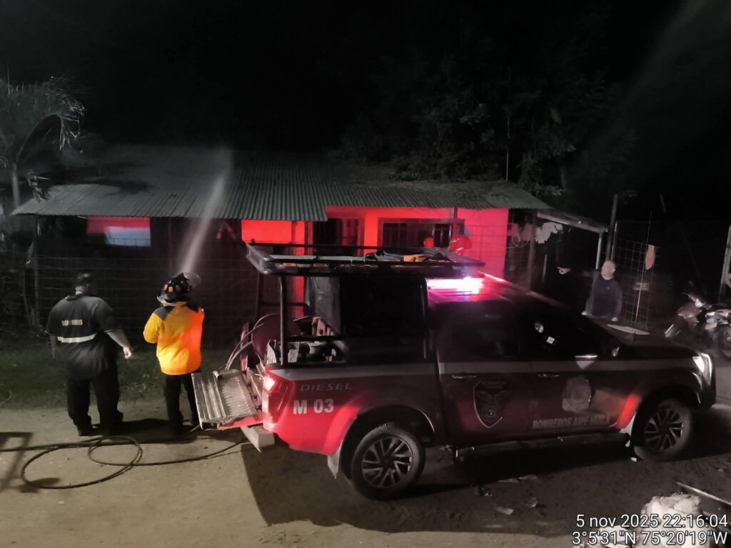 Por su parte, en el municipio de Aipe, unidades del Cuerpo de Bomberos Voluntarios atendieron un incendio en la casa número 43 de la vereda San José DINA, donde resultó afectada la vivienda de la señora Olivia Castro Cuéllar y su familia.