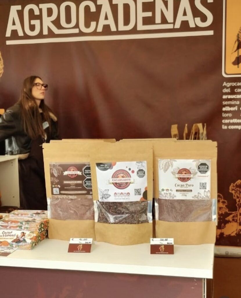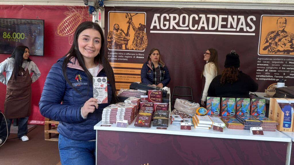A unos metros del estand de Shalena, Cacahuarte exhibe su portafolio. Su representante, Martha Clara Meneses, cuenta que cada producto que llevan a Italia nace en un proceso artesanal que involucra a mujeres del municipio de Elías. Muy contenta de estar en esta experiencia. Nos han dado la oportunidad de conocer muchas experiencias del cacao e intercambiar conocimientos. Hemos compartido con diferentes países, además de capacitaciones, relata. El proyecto inició como un esfuerzo por aprovechar la producción local y con el tiempo se consolidó en una línea de derivados que van desde el cacao natural hasta presentaciones endulzadas con panela orgánica.