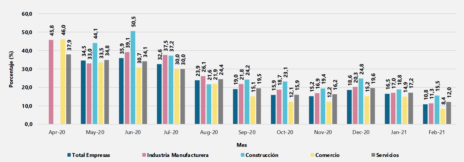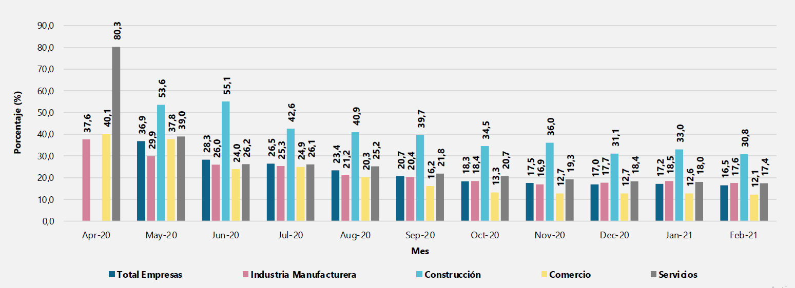 Así mismo durante el mes de febrero todos los grupos de la economía se encontraban en cerca del 97% en operaciones normales.