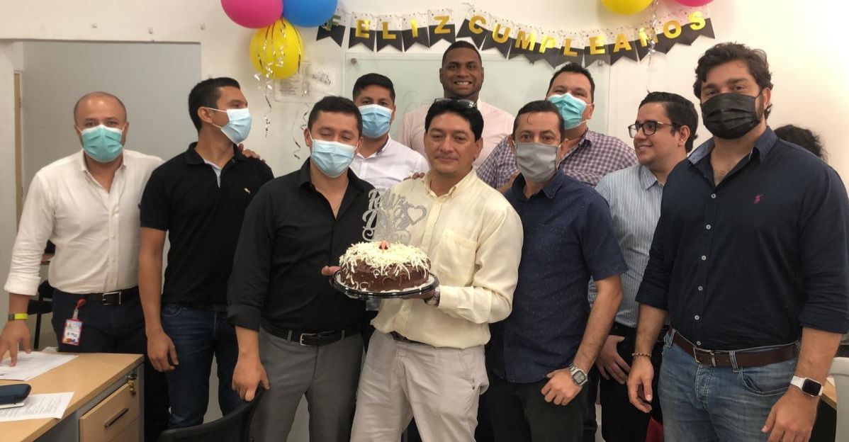 El ingeniero Germán Gutiérrez cumplió un año más de vida y sus compañeros de trabajo se lo celebraron sorpresivamente.