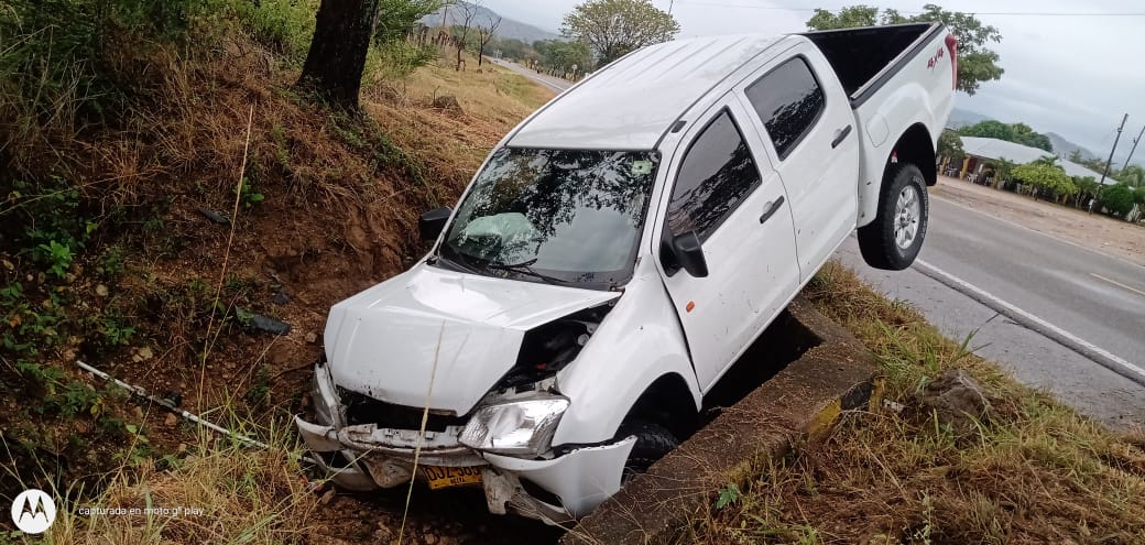 El primer accidente de tránsito deja como saldo una camioneta doble cabina en el sector Brisas del Magdalena, ruta 45. El Cuerpo de bomberos Voluntarios de este municipio atendió el accidente.
