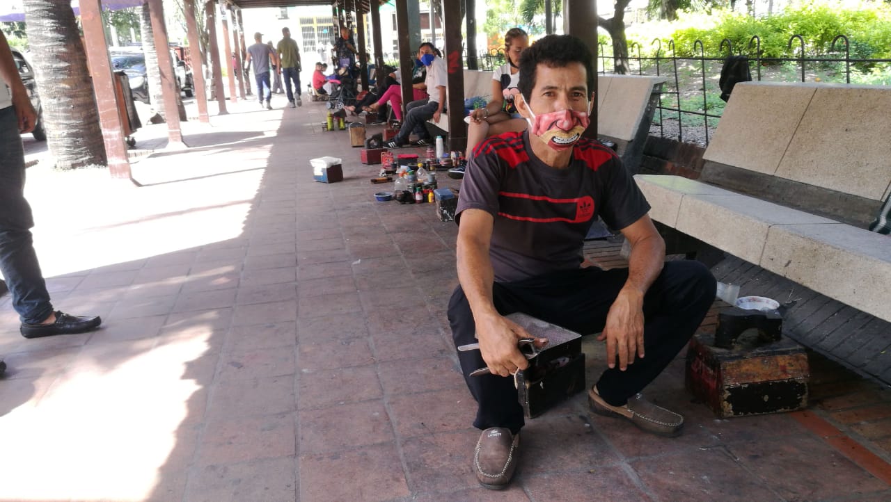 “Nos tocó encerrarnos y ponernos a hacer otra cosa, salíamos hasta a pedir comida, porque de esos políticos, como el gobernador actual, que venían acá a hablar con uno cuando estaban en campaña, ninguno fue capaz de darnos algo en la pandemia, nos tocó solos”, manifestó Reinaldo Montenegro, un lustrador del parque Santander.