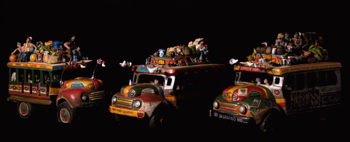 La obra de Cecilia está enmarcada dentro de lo que se conoce como arte popular; pero sus creaciones no son el resultado de una serie de objetos para comercializar en cantidades siguiendo un mismo patrón, lo que hace Cecilia y hacía su mamá, doña Aura Muñoz de Vargas, es crear piezas únicas, objetos casi de culto que en muchos casos se hacen por encargo o, como en este caso con Expreso Vorágine, son el resultado de una lenta y minuciosa investigación. Por eso cada pieza de Cecilia tiene un sustento teórico que es otro valor agregado, dirían los economistas, y es el hecho de escucharla hablar de sus obras. Nada nace del azar. Cada objeto, cada color, cada figura, cada personaje está en La chiva porque se ganó su puesto, porque la historia que ella cuenta, así lo requiere, porque detrás de esa pieza hay una historia de esa novela que la conmovió, que le dijo algo y que quiso poner ahí para decir lo que ella quería decir.