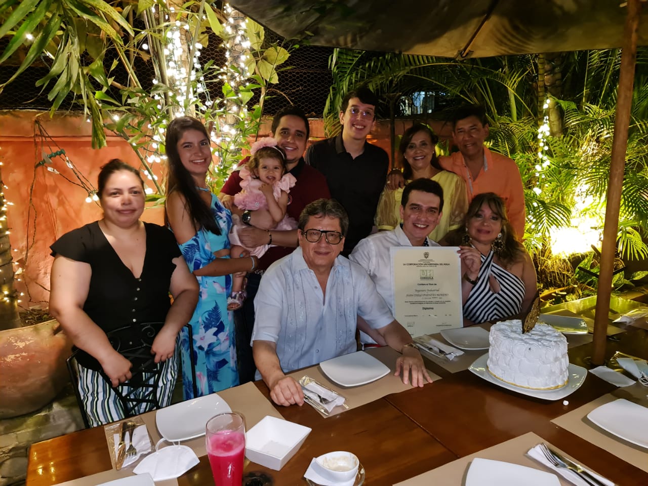 Juan Diego Puentes obtuvo el título de Ingeniero Industrial, familia y amigos le desearon muchos éxitos por este logro obtenido. Gloria Moreno, el graduado, Juan Manuel Puentes, Sebastián Puentes, la pequeña Luisa María Puentes y Gustavo Puentes.