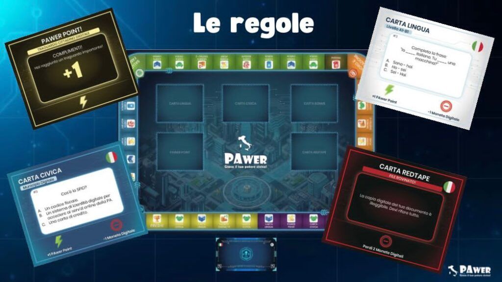 La propuesta tomó forma bajo el nombre de PAwer Gioca il tuo potere civico. Se trata de un juego de mesa creado para facilitar la comprensión de trámites de la administración pública italiana. La idea inicial surgió de una propuesta conceptual presentada por Marco De Cave, pero el diseño final, la estructura del juego, las dinámicas, los contenidos y la elaboración gráfica fueron desarrollados dentro del CPIA 9. Paula y su esposo asumieron la mayor parte del diseño, combinando conocimientos de marketing, creatividad y habilidades gráficas, mientras que las docentes orientaron el enfoque pedagógico y los estudiantes mexicanos aportaron desde su experiencia migratoria.