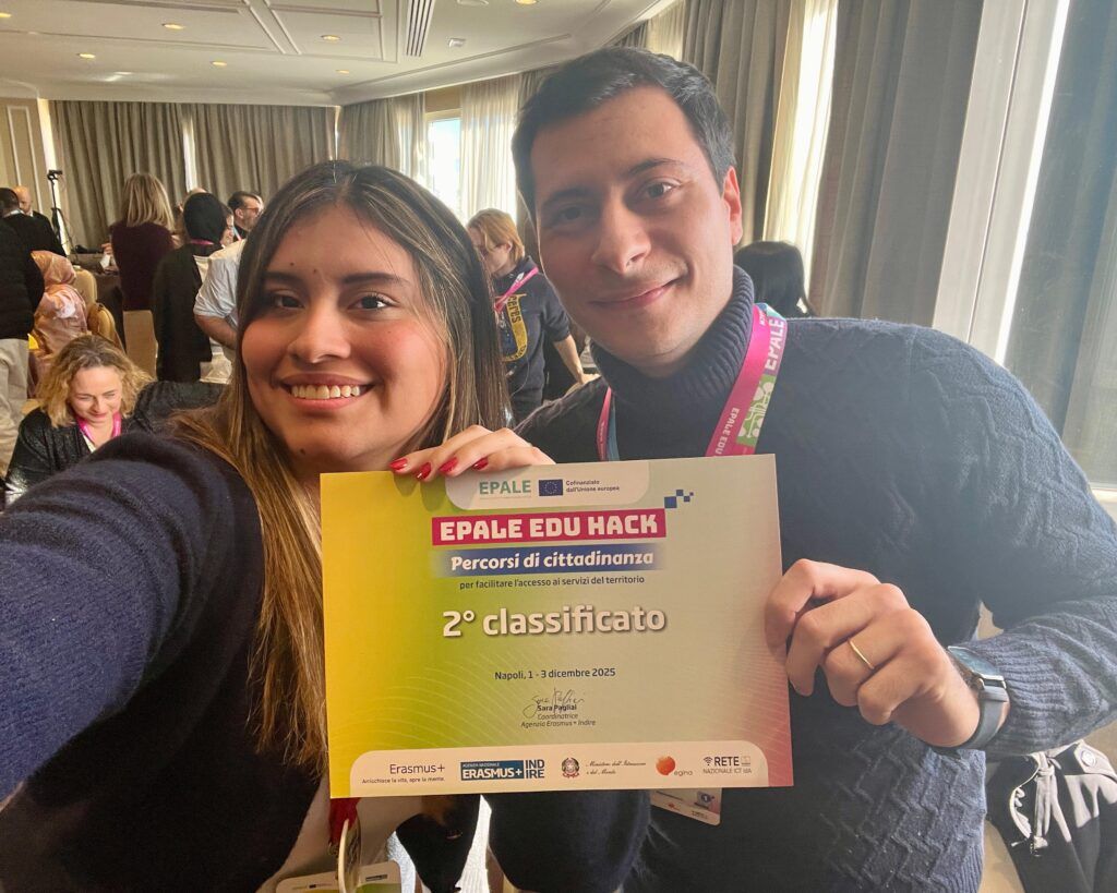 Durante ese proceso, su profesora de italiano, Ivana Tibaldi, vio en ella la motivación y la disciplina necesarias para asumir retos adicionales. A mediados de 2025 la invitó a participar en Epale EduHack, una competencia nacional en la que instituciones de distintas regiones presentan proyectos educativos enfocados en ciudadanía digital, integración y metodologías innovadoras. La docente seleccionó a Paula, a su esposo y a dos estudiantes mexicanos, además de la docente Grazia Sergi, para conformar el equipo que representaría al CPIA 9.