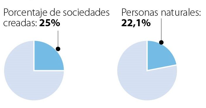 De igual forma, se presentó un crecimiento en la creación de nuevos negocios, tanto por parte de sociedades como de personas naturales, en el último semestre, con un 25% y 22,1%, respectivamente,