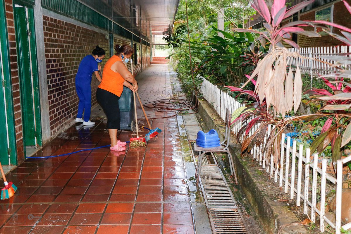 Lavado de pisos, limpieza de los ambientes hacen parte de la brigada.