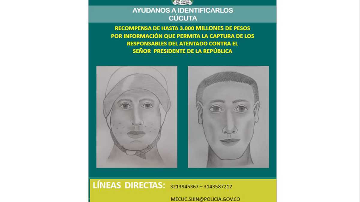 El director de la Policía Nacional, general Jorge Luis Vargas anunció: «Estos son los retratos hablados de los autores del ataque contra el helicóptero que transportaba al señor presidente Ivan Duque y su comitiva».