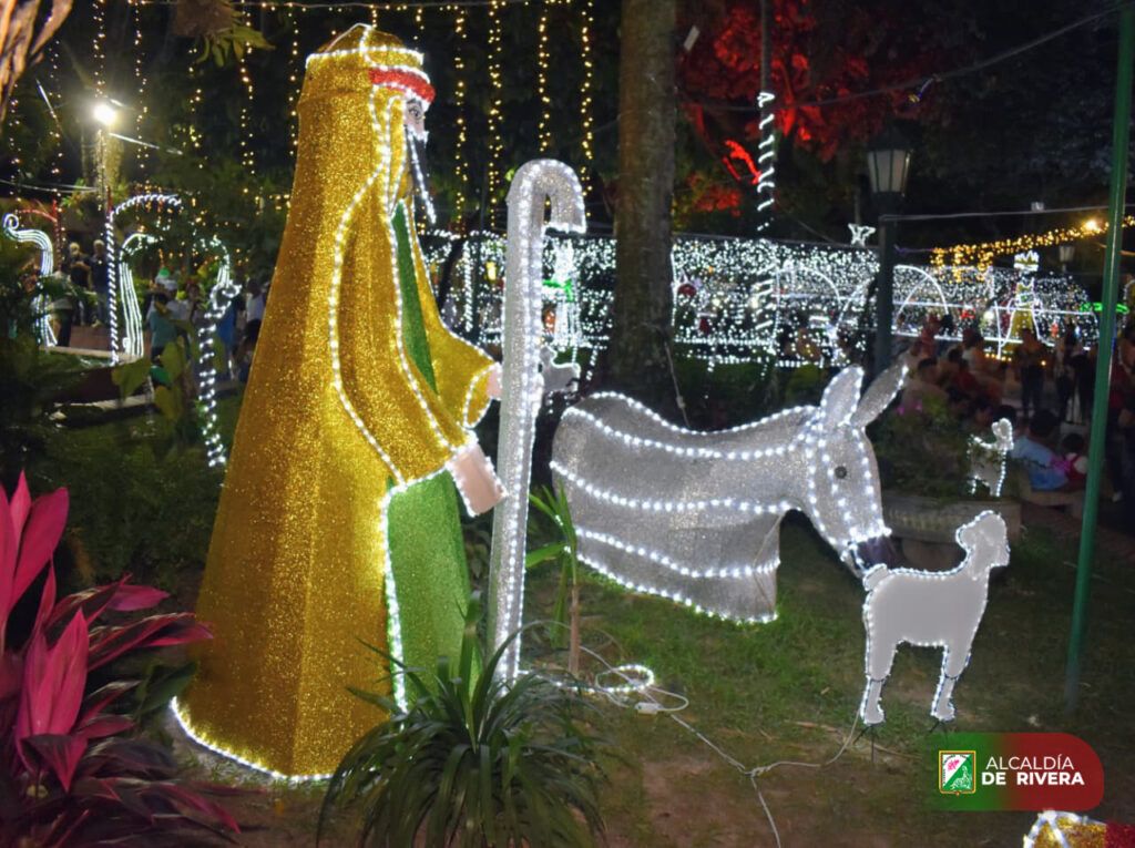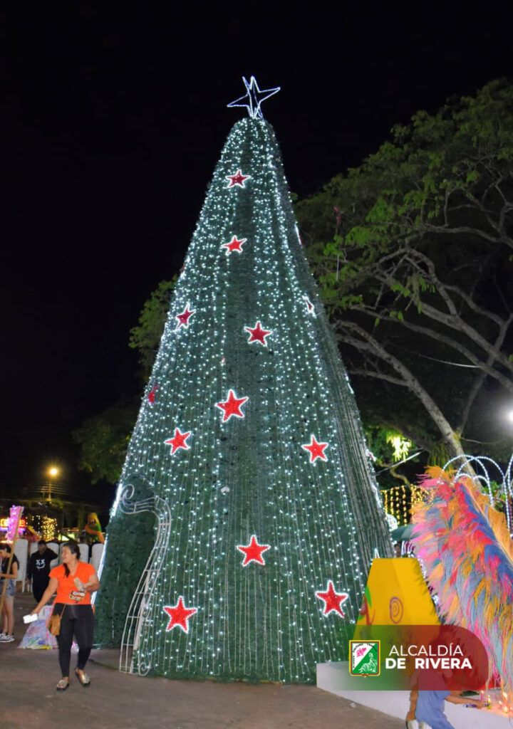 El espíritu navideño ya se siente con fuerza en el municipio de Rivera, donde el parque principal fue transformado en un escenario lleno de luz, color y tradición con la instalación del alumbrado navideño para esta temporada de fin de año.