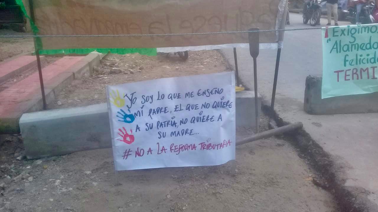 “Hay cerca de un kilómetro que está destapado y está perjudicando a las personas que viven cerca y a las que tienen que pasar todos los días por ahí. En defensa a la vida y a la salud, estamos protestando para que pronto se termine la obra en su totalidad, hay que también tener en cuenta la calidad de la obra que se está entregando al municipio”, agregó.