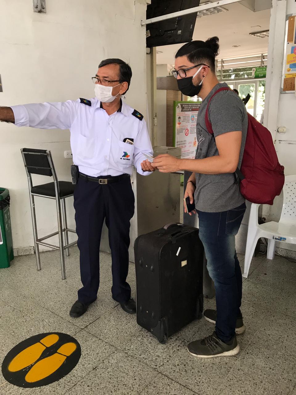 Para regular el acceso de pasajeros se debe organizar filas con distancia entre personas de mínimo dos metros en los portales, taquillas y vehículos. Esto, de la mano de las autoridades locales, permitirá además evitar las aglomeraciones en terminales de transporte terrestre de pasajeros, portales, paraderos e instalaciones.